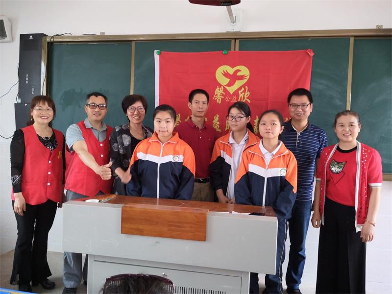 益阳长春经济开发区初级中学校长徐铁华、副校长李赛平、办公室主任曹国强、党支委员周豹,过鹿坪初级中学校长谢国辉、总务主任李卫军、财务管理人员曹应华,分别亲临助学款发放现场,见证助学款的发放,对馨欣公益志愿者表示欢迎与感谢。