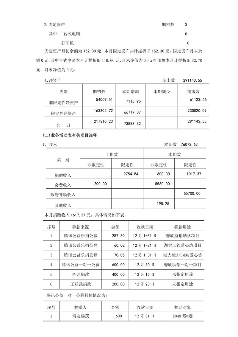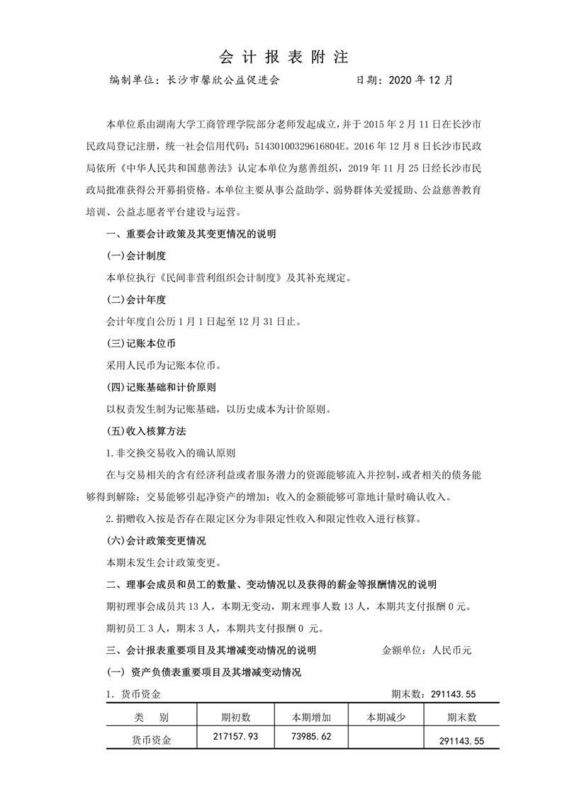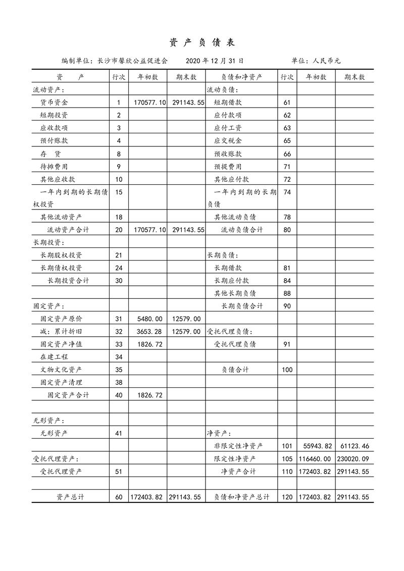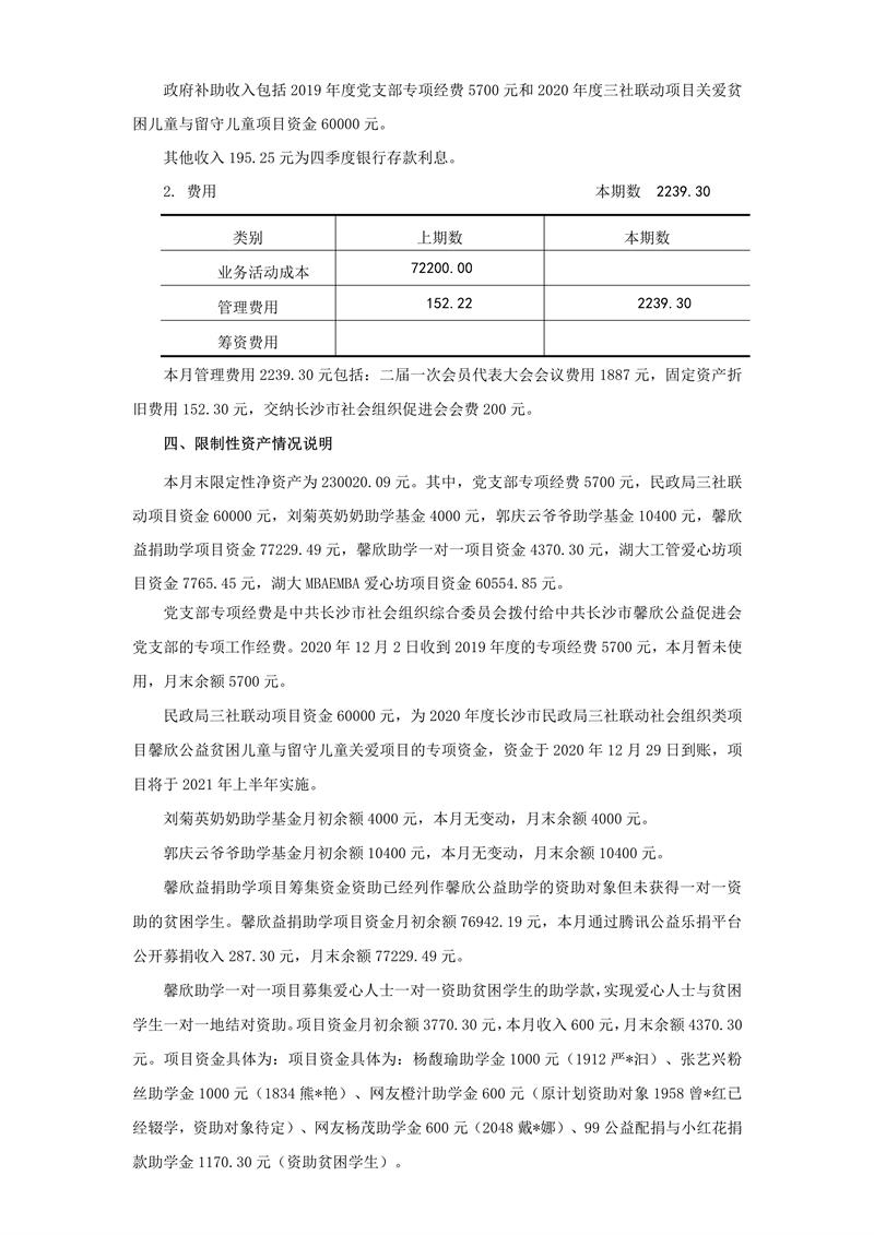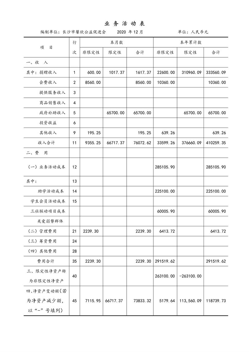 长沙市馨欣公益促进会2020年12月财务报表。长沙市馨欣公益促进会感恩发布。